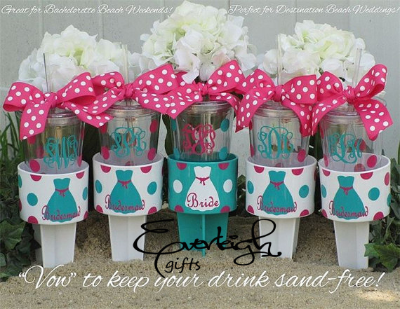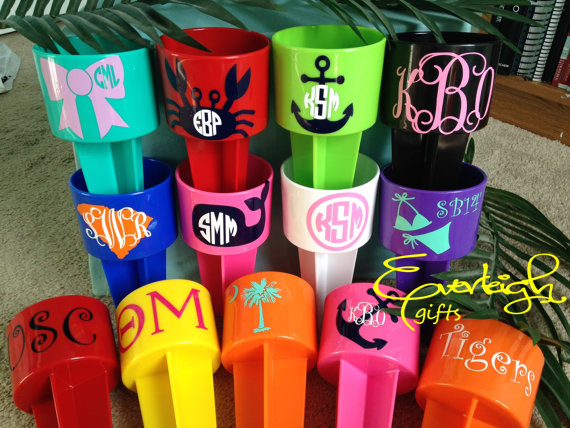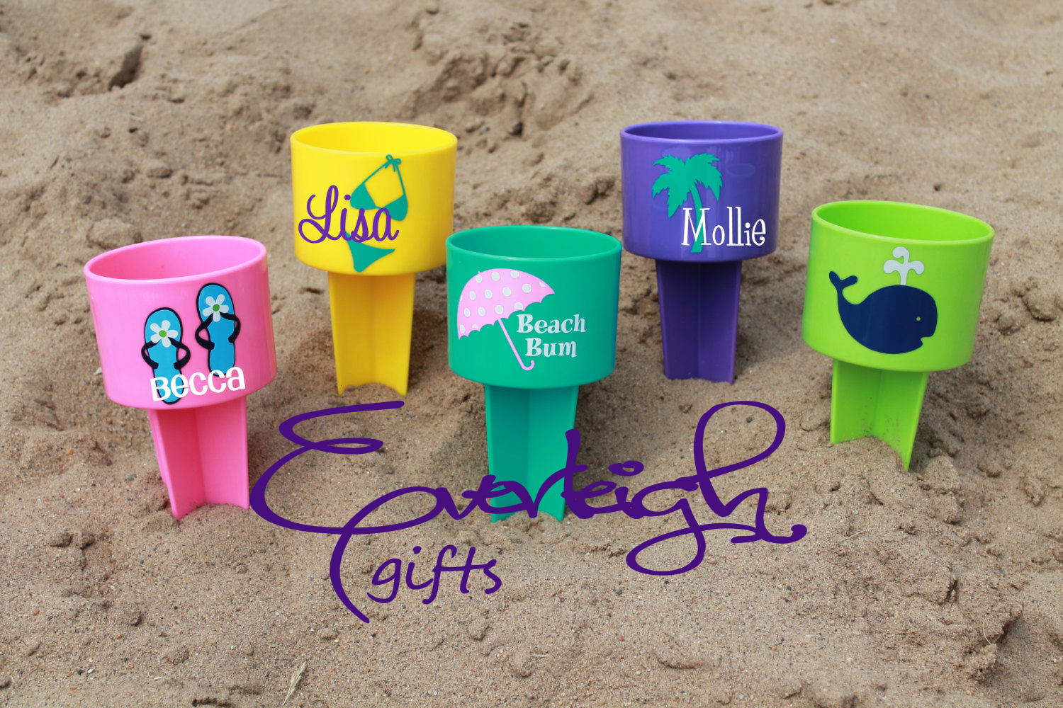 These wonderful beach drink holders stick in the sand and keep your drinks from getting too sandy or tipping over. Also great for holding your cell phone, sunglasses, sunblock or other small items. Use at the beach, the sandbox, or the backyard