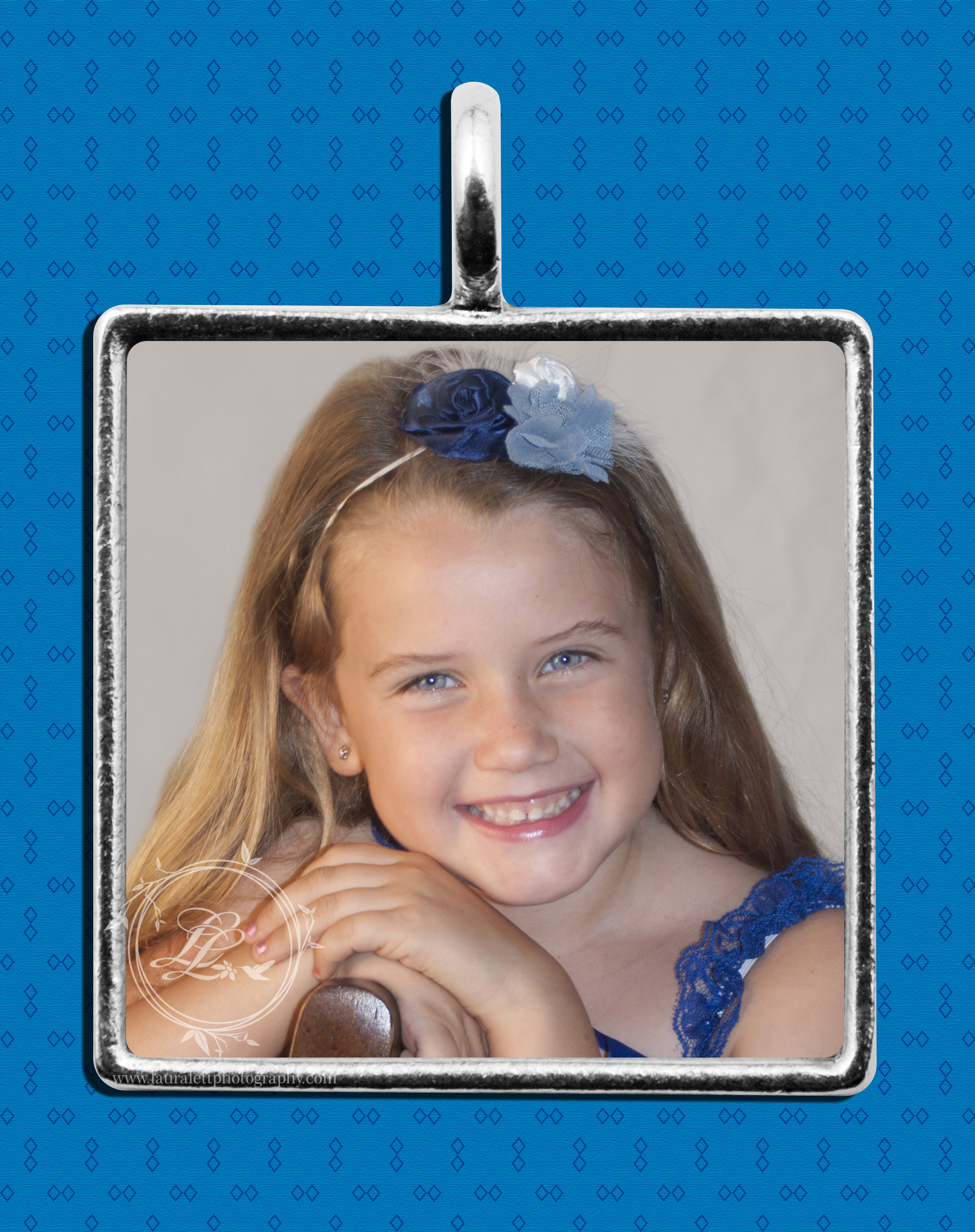 This 15/16” square makes a wonderful size pendant to showcase your image and wear with a necklace or as a commemorative piece on a wedding bouquet. It is made with lead-free pewter with an antique silver coating.